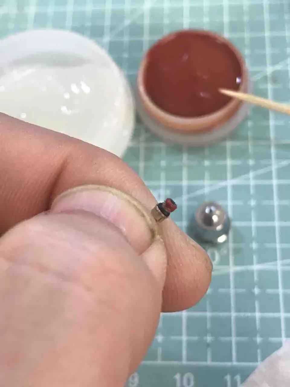 1、笔尾端的圆球看似以为和英菲尼迪的设计一样一按方便调节出漆量,实际一点毛用都没有,是用来吸住喷嘴的吸铁石而已,然而吸力并不好,很容易掉,所以毫无用处。