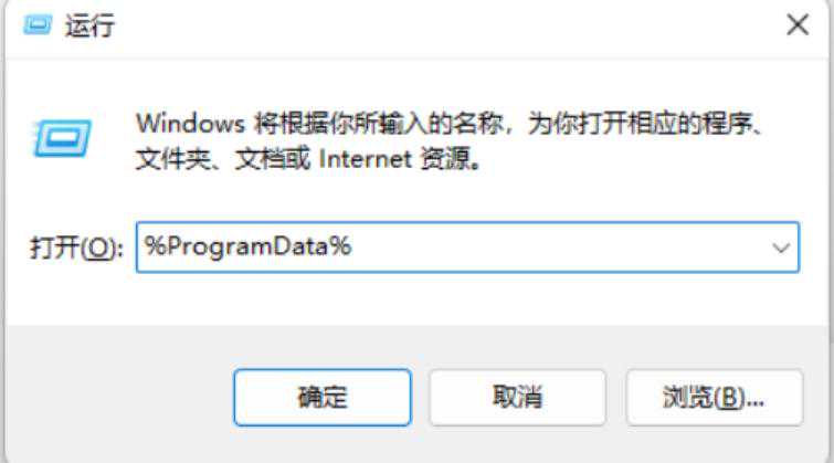 解决方法二:按Win+R键打开”运行“,输入“%ProgramData%”。