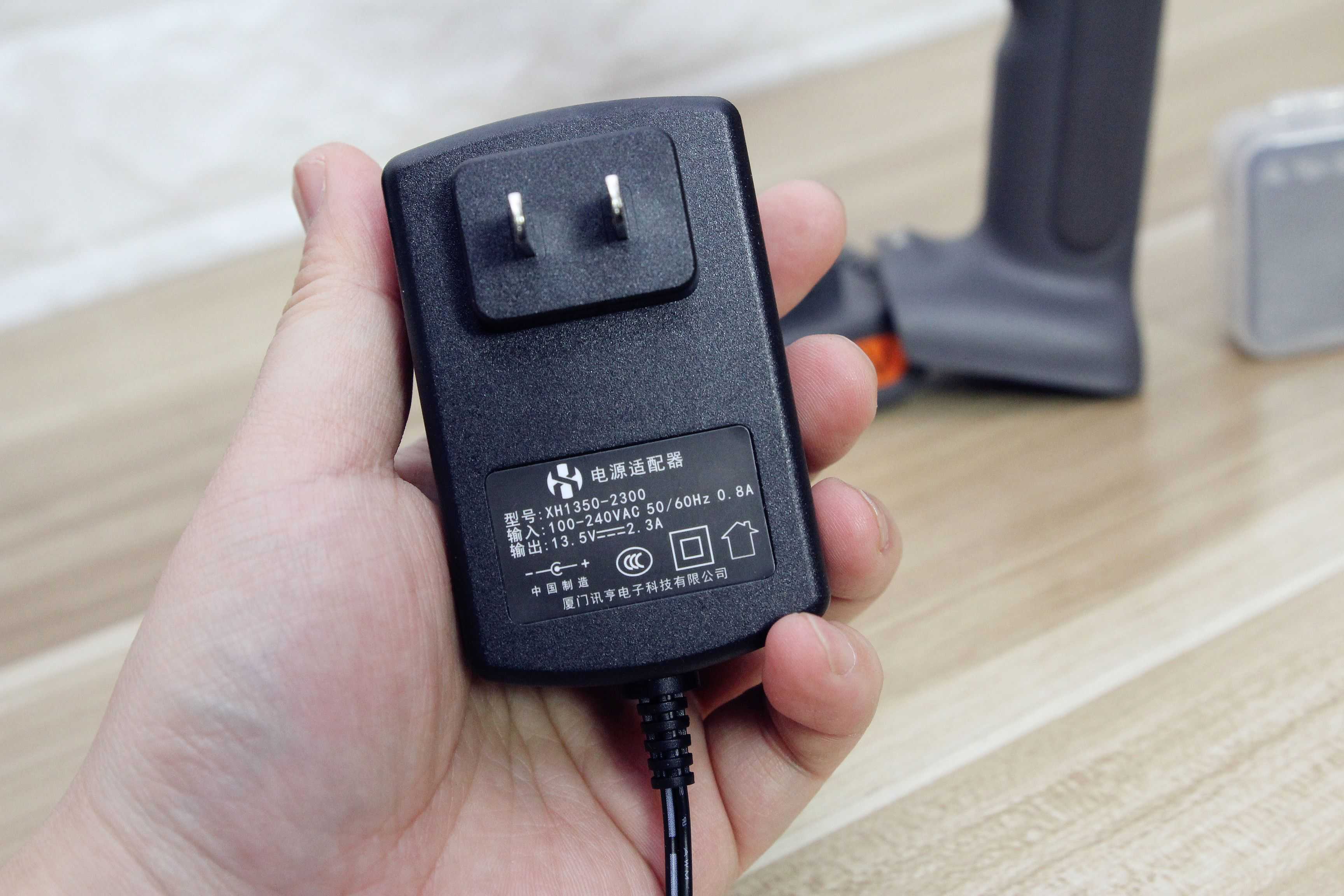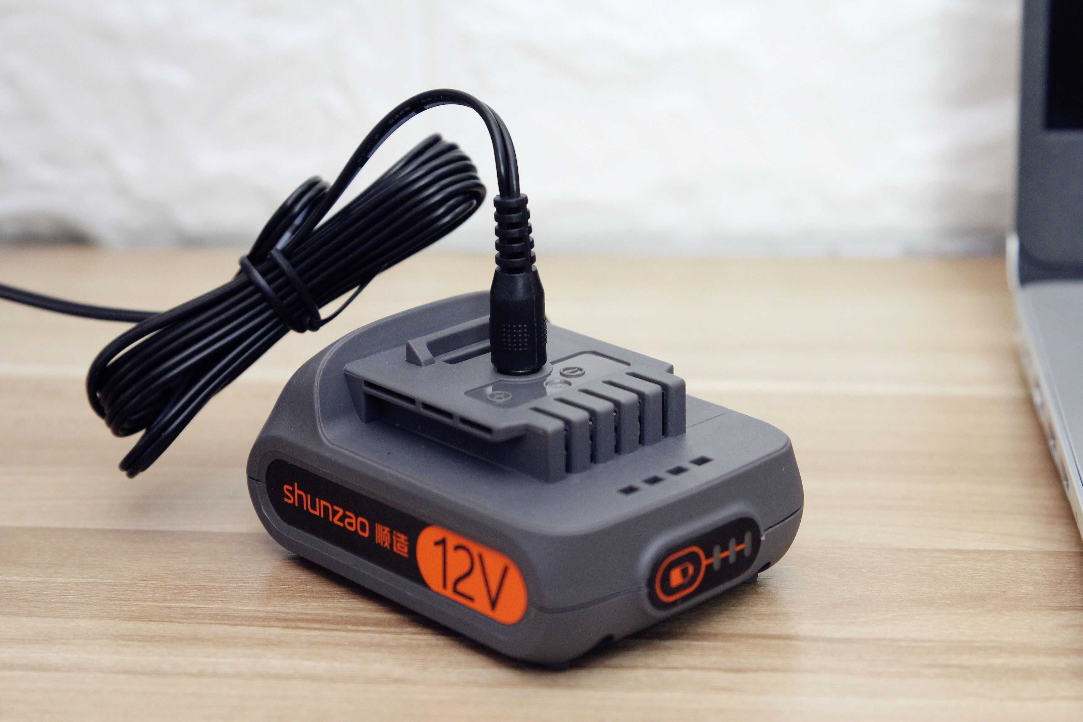可拆卸电池包容量为2000mAh,具备快充功能,1小时即可充满,续航时间约为50分钟。使用前需要手动安装到冲击钻上才能使用,充电口在中部,插上充电插口即可开始充电。尾部是按压式电量显示窗,无绳设计使用方便灵活,对使用频繁的商业用户如汽修、家具厂来说,可以多买几块电池包轮换使用,提升工作效率。