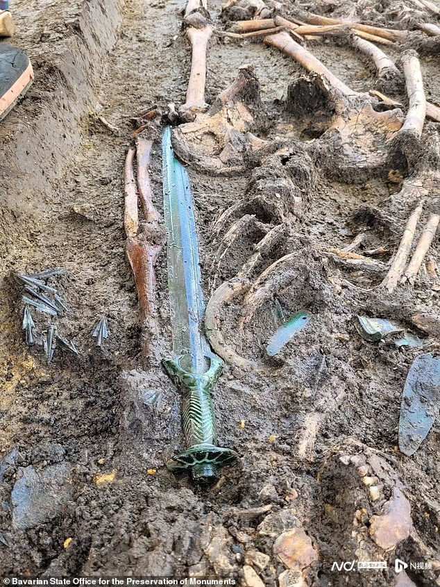 考古学家上周在德国巴伐利亚州诺德林根小镇的一个古墓发现了一把极为罕见的青铜时代的剑,尽管这把锋利的武器已有3000年历史,但其工艺精良,罕见地保存完好,出土时甚至寒光闪闪。