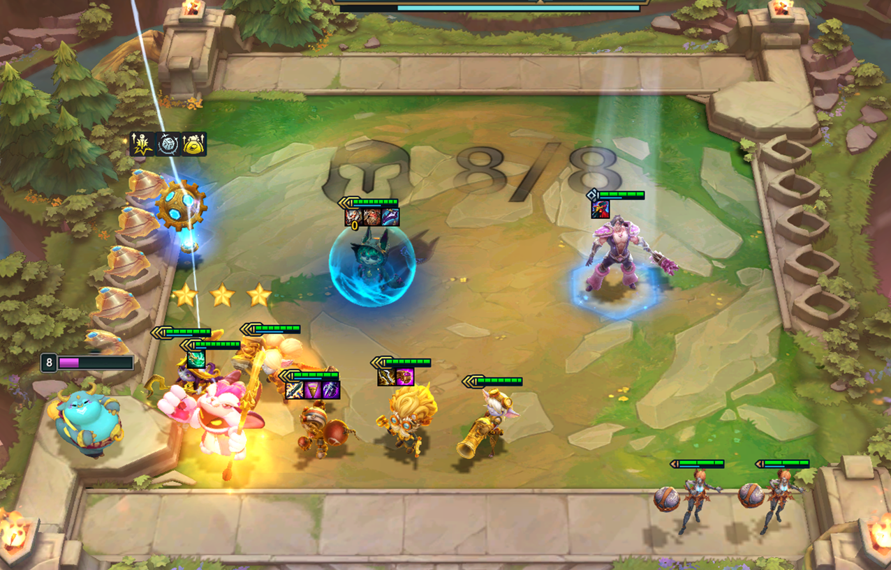 回到正题,其实更多时候玩小法师其是在追梦。成型过程中没办法给小法师预留装备,裸装上场的小法师对阵容并没有多大提升,一般在七人口时会挂风女凑两学者两白魔,八人口才会上两星的小法师。