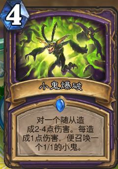 熟悉瓦娘的观众老爷们一定也都知道,曾经在地精大战侏儒版本中,术士有一张特别素材的卡牌----小鬼爆破(对一个随从造成2-4点伤害,每造成1点伤害,便召唤一个1/1的小鬼),而瓦娘在直播中,大家只能看到小鬼爆破打2的情况出现,于是大家又称这一现象为“同福爆破”