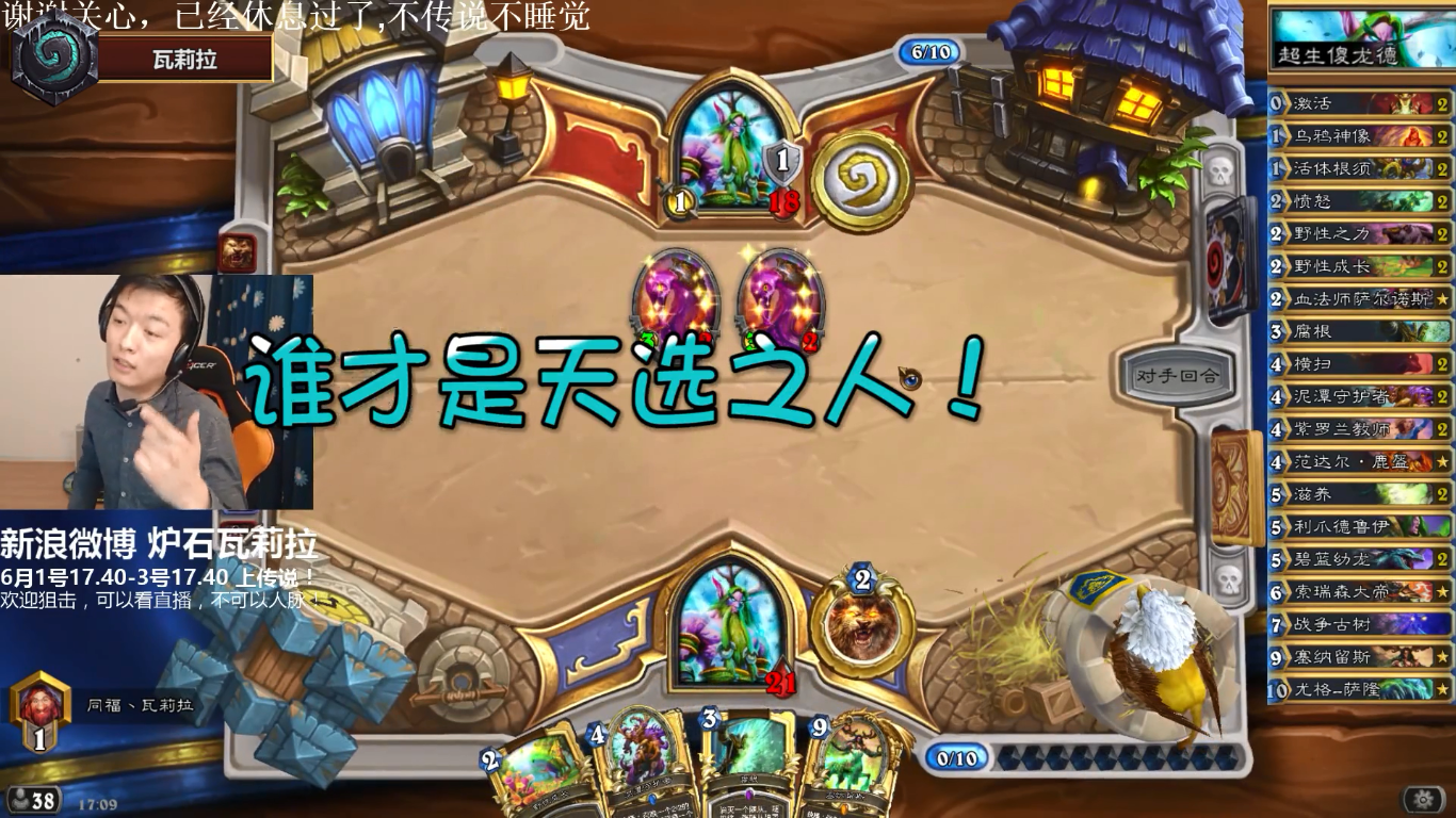 瓦娘曾经月初冲传说,不上传说不睡觉,在渡劫局时,遇到了一个和他一样天胡的德鲁伊,双方互换场面之后,就要靠塞纳留斯站场之后,叫嚣对手“谁才是天选之人”