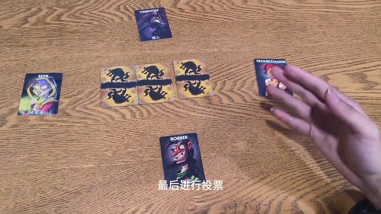 ·如果出现平局则都被处决。被处决的玩家要翻开自己的身份牌,如果至少有一个狼,人则好人获胜,反之则狼人获胜。因为有三张中央的身份牌存在,所以游戏可能存在没有狼人的情况。如果是这样的情况,所有人必须互相投票,每人都得一票,让大家都存活下来,才能一起获胜,反之则所有人都失败。当然除了这些基础角色之外,还有很多可选角色让进阶玩家去体验,每个角色的技能都各不相同。