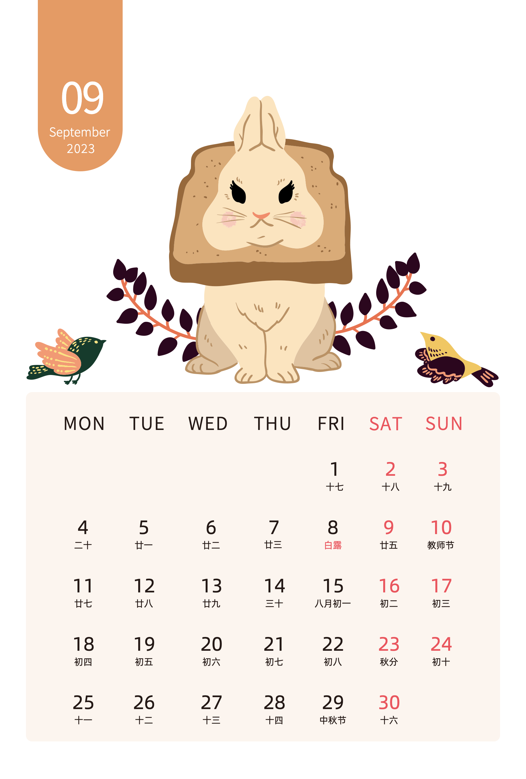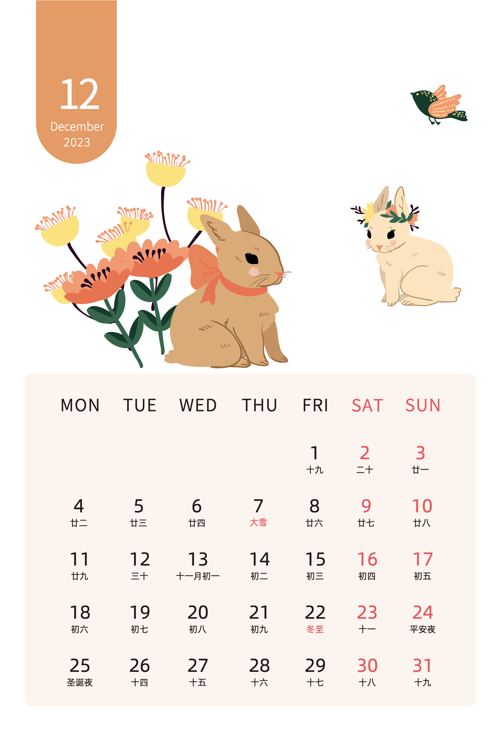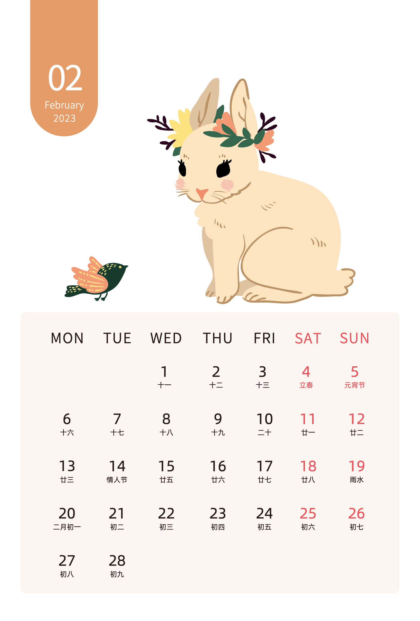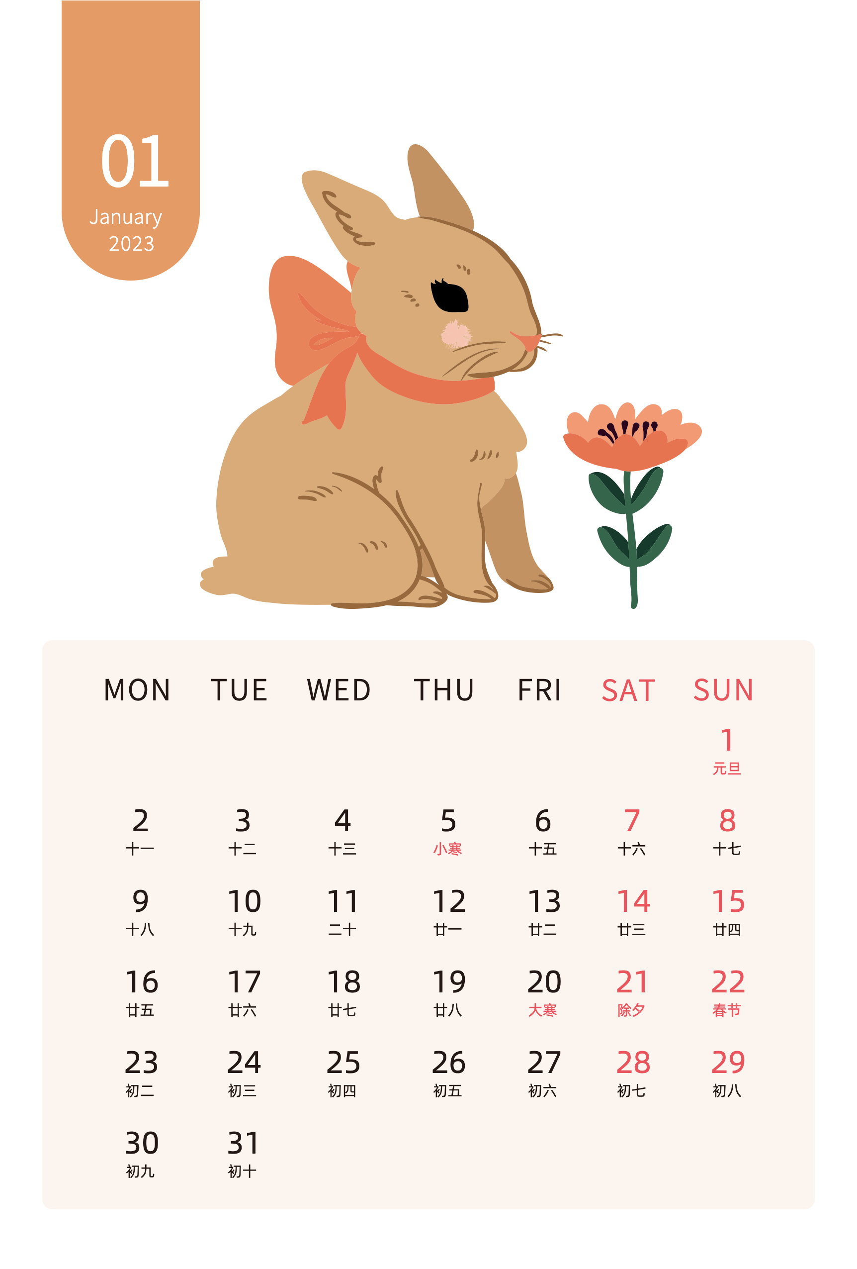 2023日历更换好了吗?2023年插画动物竖版台历日历,2023兔年定制版。