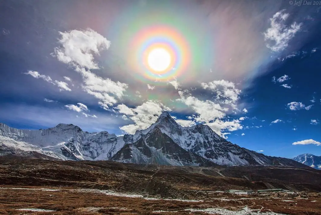 完整的日华很容易分辨,圆环的中心位置是太阳。