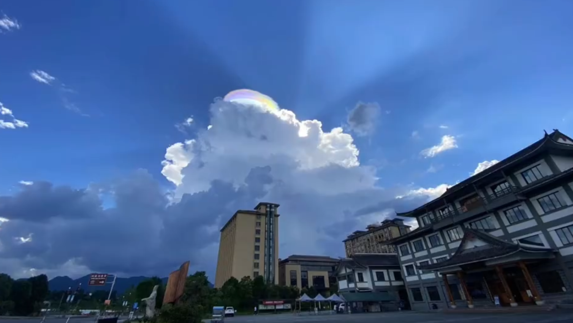 这种云层非常罕见,有时即便出现幞状云也不会形成虹彩,主要是和太阳的位置有关,多出现在我国南方太阳快落山时。